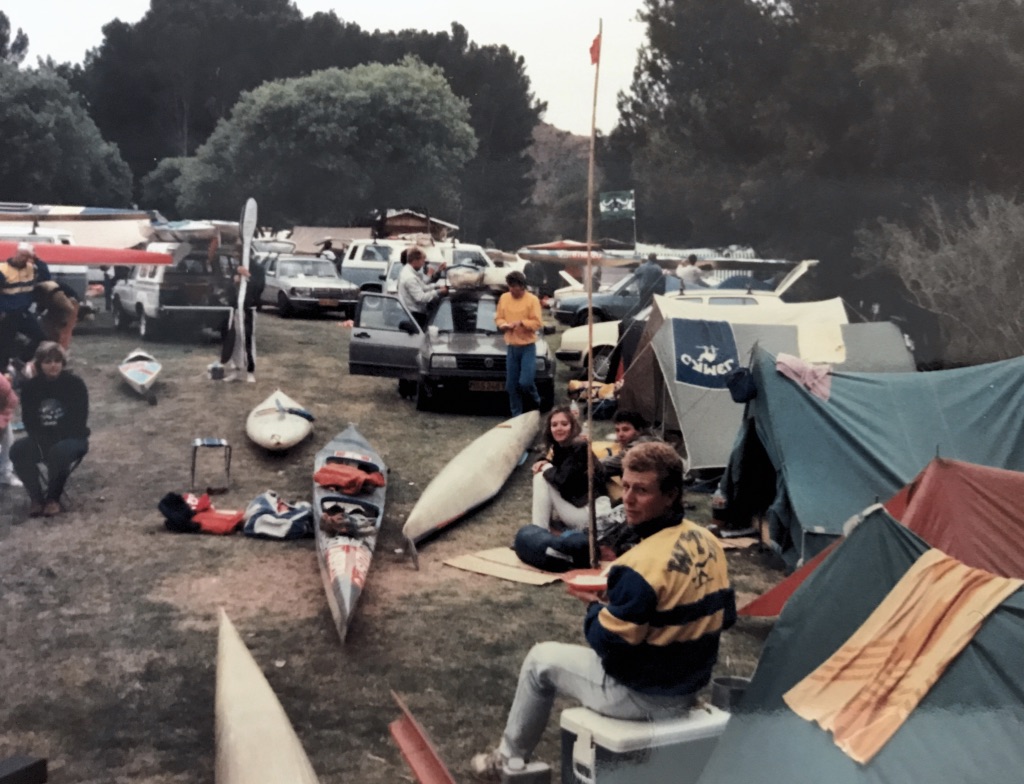 We then drove through to the Craddock Spa and again put up the old tent in the Wits Kibbutz. That year I paddled my ‘Winston’ boat. Prior to this, I had tried to get some sponsorship for myself from that brand. While smoking and paddling might sound like a bad fit, Texan had previously sponsored the PE2EL Challenge and many of the old salty sea dogs still call it the Texan Challenge, plus the Camel Man did paddling adventures; so with this in mind I put in my application to the RJ Reynolds marketing team who were a client. Unfortunately, I had no winning credentials to share and was rejected. Not deterred, proud of the fact that I stopped for smoke breaks during races and still wanting to look like a sponsored athlete, I boldly stencilled the Winston logo across the back deck of my red boat.
