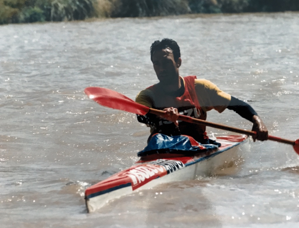 1990 marked the year that John (Hairy) Oliver became canoeing’s official time keeper and administrator, with the assistance of his wife Margie. John was an accomplished paddler in his youth. In one of my early Umko’s I had paddled with him when he too was in a whitewater boat; and I remember thinking he had so much beard he must have been one of the ZZ Top guys, but he knew all the rapids by name and had good lines so I happily sat back and followed him. Some 30 years later John remains faithful to canoeing and the timekeeping cause and today John and his family are icons of South African canoeing. He did the 1989 Dusi with his eldest daughter Lorna when she was just 13 years old and to her credit in 2021 she completed her 33rd consecutive Dusi, a truly incredible achievement. Kirsten took a long break to focus on sprints, but she has 22 Dusi’s to her name, while John has 15 – a total of 70 between father and daughters. Proof that once you have done one or two, the Dusi gets you. Sadly, Margie has passed as has Neil Powel who looked to be ‘the next official keeper.’ I love how there’s no difference between John dressed up for a photo shoot and John at work. 30 years later he is still making races happen and keeping times.