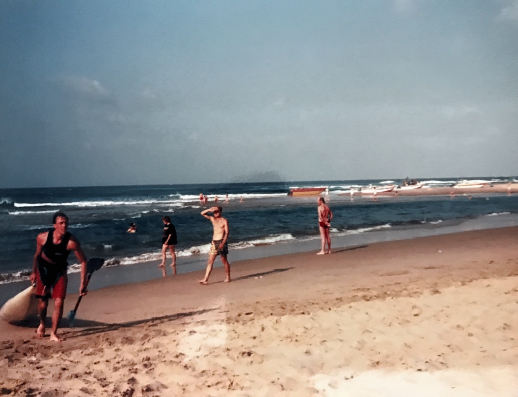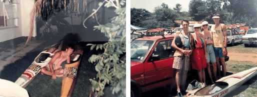 As a Zimbo, Easter of 1990 was the first time I witnessed the fun of a surfski doing ‘ins and outs’ and it was the first time I tried to surf. A large contingent of Wits paddlers including Neil an Lo, Rod and Jac’s plus Dee and I descended on the Cooke’s holiday home at St Michaels in KZN; they had all the toys and we played hard. I didn’t get to paddle the ski, but I spent a lot of time on various surf boards and although I could barely stand up, I had loads of fun. The surfing bug had its first bite…