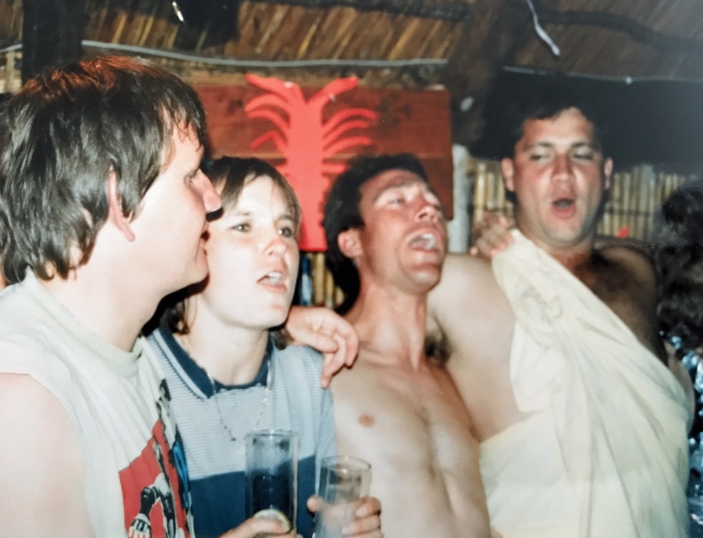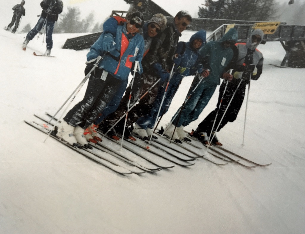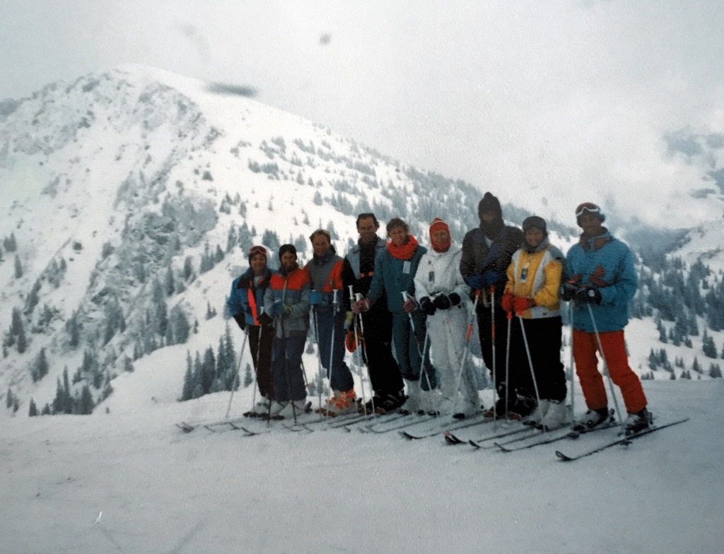 Three weeks later Dee and I, Neil and Lo, Sue and Puc, Rob and Colleen Monteith and Puc’s sister Sandy Attridge, flew to Munich and then caught trains and busses to Hopfgarten, Austria. Most memorable was the day we skied to Brixten in an icy blizzard. We were like Vaalie’s at the seaside; not going to pass on the fun regardless of the conditions, and they were bad, but this made for great snow. Two other memories stuck; one being how Dee and I couldn’t get bum lifts right, had we been on honeymoon it would have been disastrous; the other being that Rod Penaluna squatted in our room for a few nights (not sure why we got him, but we did) and he had the smelliest socks and gloves ever.