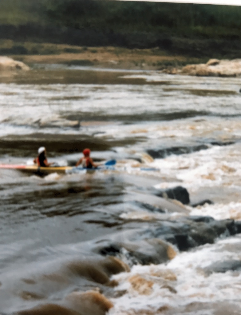 For the 1990 Umko a girl asked me to paddle with her. How could I say no Liefie Schulze? I do remember that she was very popular at the overnight stop and I believe there may have been some river crossings in the dark. That year Pop’s diary read: “16 hopefuls descend on me for the Umko, including the parents of Perrow and Herreveld. My bedroom a birds dorm.” He also noted that Liefie and I made the podium as the 3rd Mixed Double and won a repair kit. Grant Woollaston and Ken Reynolds won.