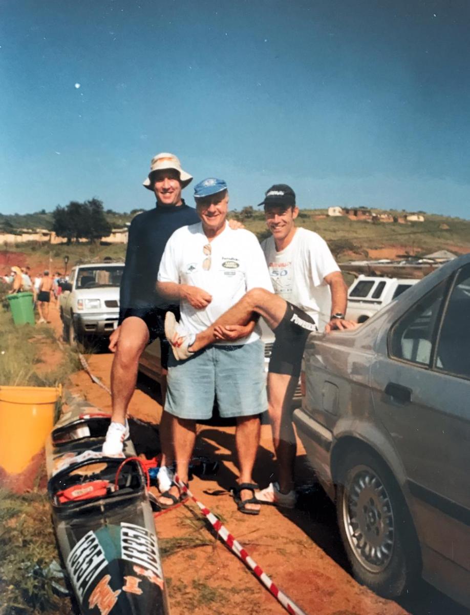 Dee stayed home for the Fish, Pops and I went down with Neil and his brother-in-law’s Rod and Puc. Rod did some low-level flying and we got to Cradock in 6hours 30 minutes. We hadn’t trained but we were in A batch and raced hard. Day 1 was cold and wet, Keith’s was big, but we made it and from there on it was plain sailing. Day 2 was uneventful, and we were very happy to finish 30th overall and won the ‘First Siblings’ title. We didn’t wait for prize giving, Rod flew us back to the Vaal dam at high speed to spend the rest of the weekend with our families. That was a K1 year, won by Graham Solomon.