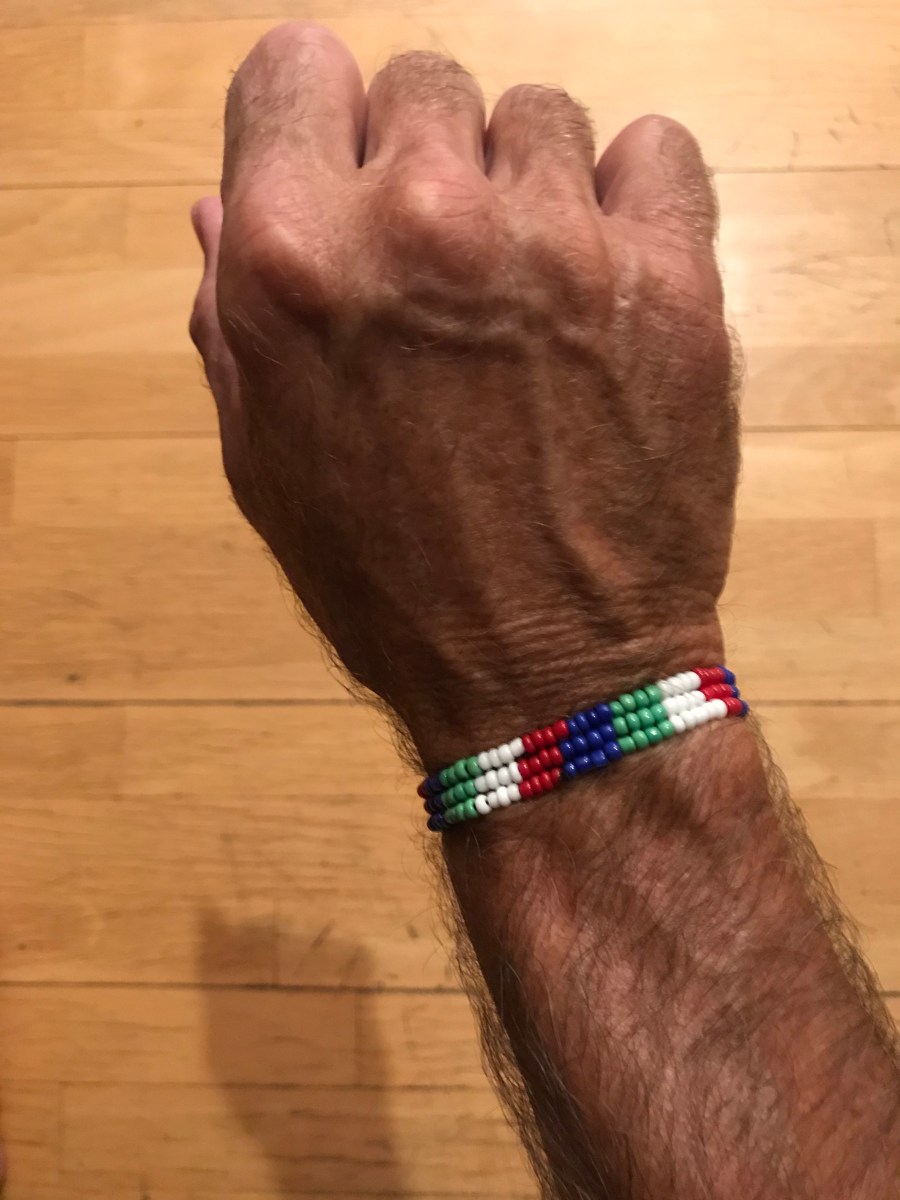 Like Dusi, Comrades 2000 also attracted a bumper field and a record of over 24 500 runners. It was a privilege to be there. That was the year they launched the Amabeadibeadi Charity Fund. There were 4 bead colours: White for Cancer and CHOC, Red for Aids, Blue for the Community Chest and Green for the Wildlands Conservation Trust. I quite liked the concept and given that my mom had been taken by cancer I thought this was a good charity to support. Most people wore their sting of beads like a neckless, but I wrapped mine around my wrist and then never took them off. I continued to support the Amabeadibeadi charity for many years and two decades later, I am still wearing replicas of them. For me they are a daily reminder of life – and of death. As a special treat I make strings of the same colours for my family, but they seem to lose or break them quite easily.
